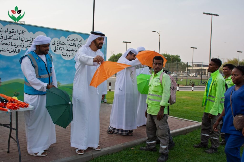 وقال المهندس شهاب أحمد الحوسني رئيس مجلس إدارة الفريق إن هذه المبادرة التي أطلق عليها عنوان “سقيا العين وظلاً وأجراً”، جاءت بجهود ودعم من الشيخ الدكتور سالم بن ركاض ومشاركة المتطوعين وأسرهم في الحضور الميداني، حيث قاموا بتنظيم الفعالية وتوزيع 250 مظلة واقية من حرارة الشمس على العمال، وتقديم الدعم المعنوي لهؤلاء الذين يبذلون جهوداً وتعباً في الحدائق والطرقات العامة.