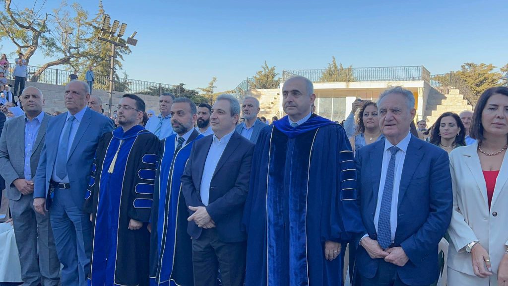 رعى رئيس الجامعة اللبنانية البروفسور بسام بدران وبحضور عضو كتلة اللقاء الديمقراطي النائب وائل ابو فاعور وعضو مجلس إدارة معهد العلوم التطبيقية CNAM الدكتور وليد صافي حفل التخرج الأول لطلاب الجامعة اللبنانية في كلية العلوم الاقتصادية وادارة الاعمال – الفرع السادس وكلية الصحة العامة – الفرع السابع خلال حفل اقيم على مدرج قلعة الإستقلال/راشيا.