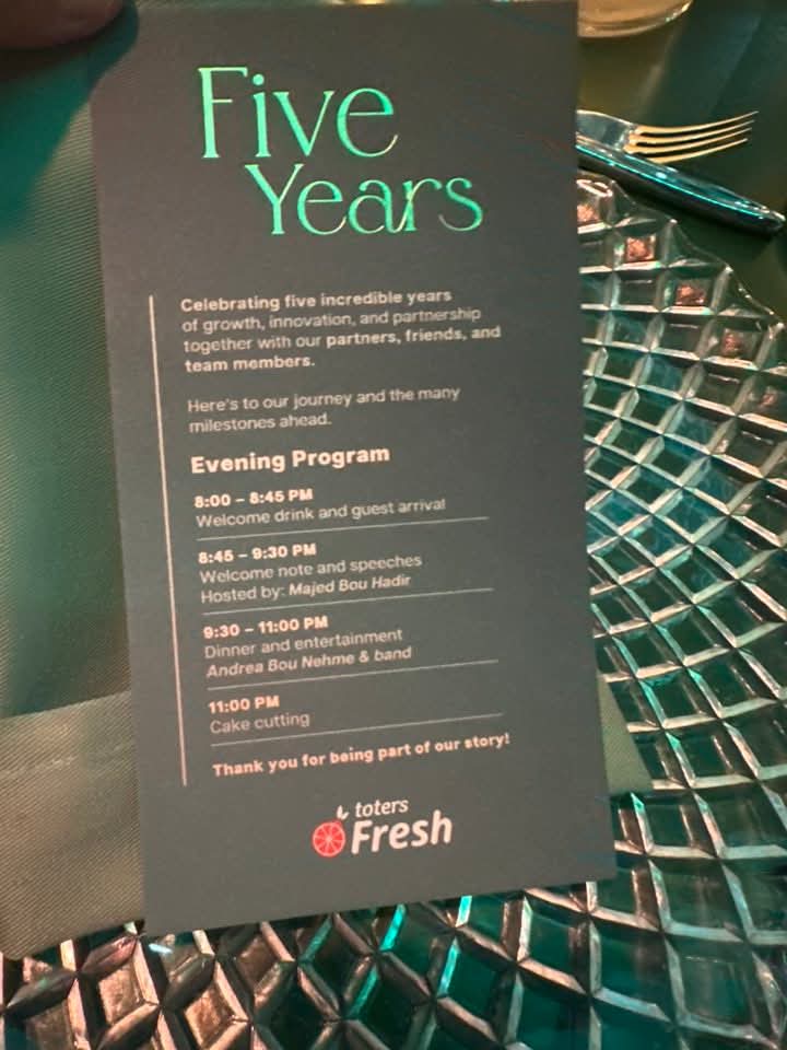 البارحة احتفلنا بنجاح تجربة Toters في لبنان والعراق خلال حفل ضخم أُقيم في بيروت، حيث تعرّف الحاضرون على قصة نجاح هذه التجربة المميزة التي انطلقت قبل خمس سنوات في الوقت الذي كان يهاجر فيه الشباب اللبناني بسبب ضيق فرص العمل وتراجع الأمل، برزت Toters كقصة نجاح استثنائية أعادت تعريف الإمكانات اللبنانية . وقد انطلقت الفكرة من رؤية بسيطة آمن بها رالف أبو خليل المدير العام للشركة ، القادم من عالم السوبرماركت الذي حوّل تجربته السابقة إلى فرصة جديدة في عالم التكنولوجيا والخدمات اللوجستية. تأسست الشركة رسميًّا في العام 2017 وبدأت نشاطها الفعلي في العام 2020، بقيادة الشريكين المؤسسين: تميم كالفة (Tamim Khalfa) الرئيس التنفيذي، ونائل حلواني (Nael Halwani) – مدير العمليات.