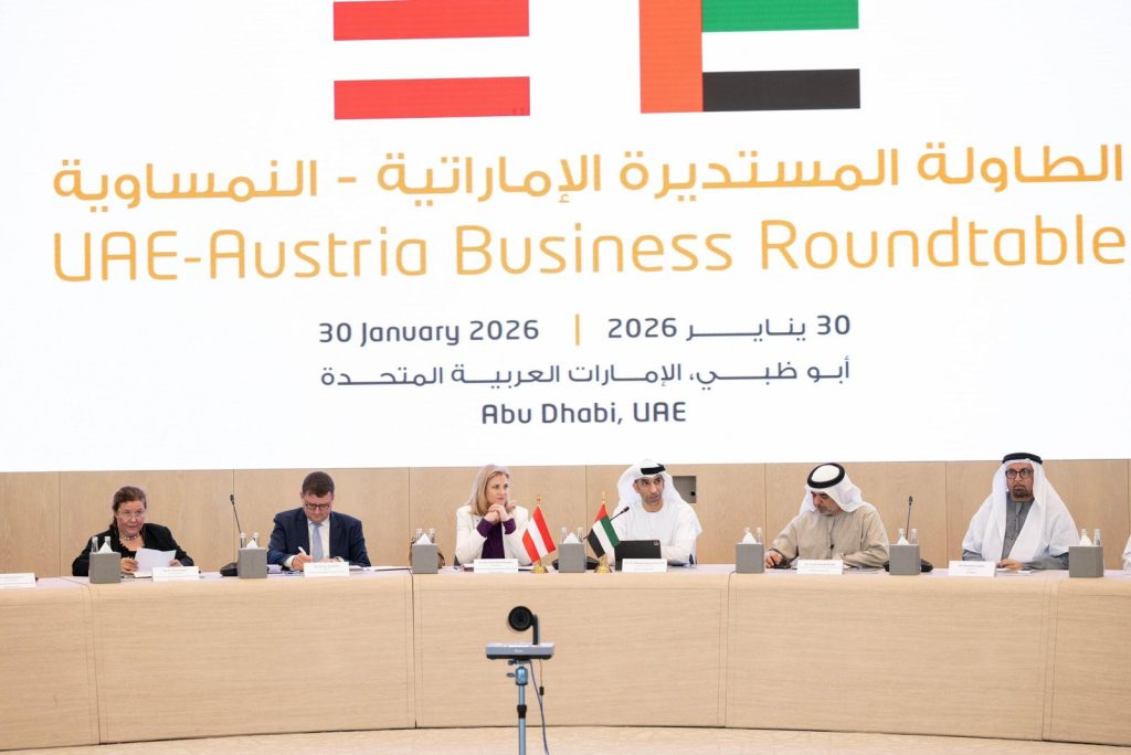 استضافت العاصمة أبوظبي فعاليات “الطاولة المستديرة الإماراتية النمساوية”، التي عُقدت بحضور وزارة الخارجية النمساوية ممثلة بالدكتورة بيات مينل-رايزينغر وزيرة الخارجية النمساوية للشؤون الأوروبية والدولية، ووزارة التجارة الخارجية الإماراتية ممثلة بوزير الدولة الإماراتي للتجارة الخارجية الدكتور ثاني بن أحمد الزيودي